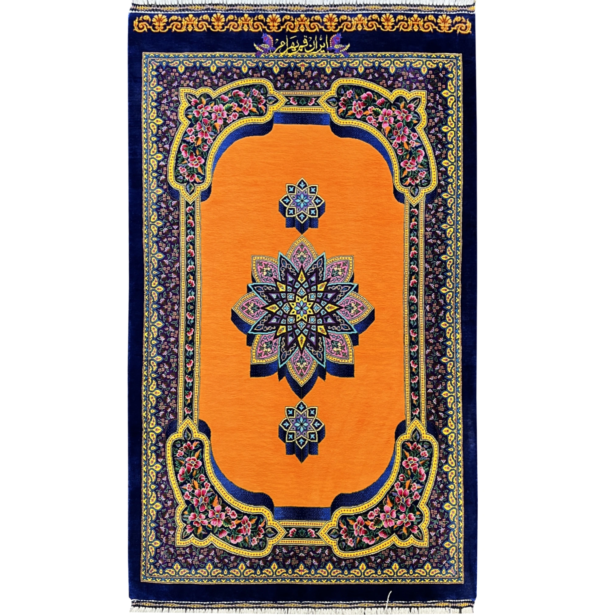 فرش تمام ابریشم ترنج سه بعدی دستباف قم