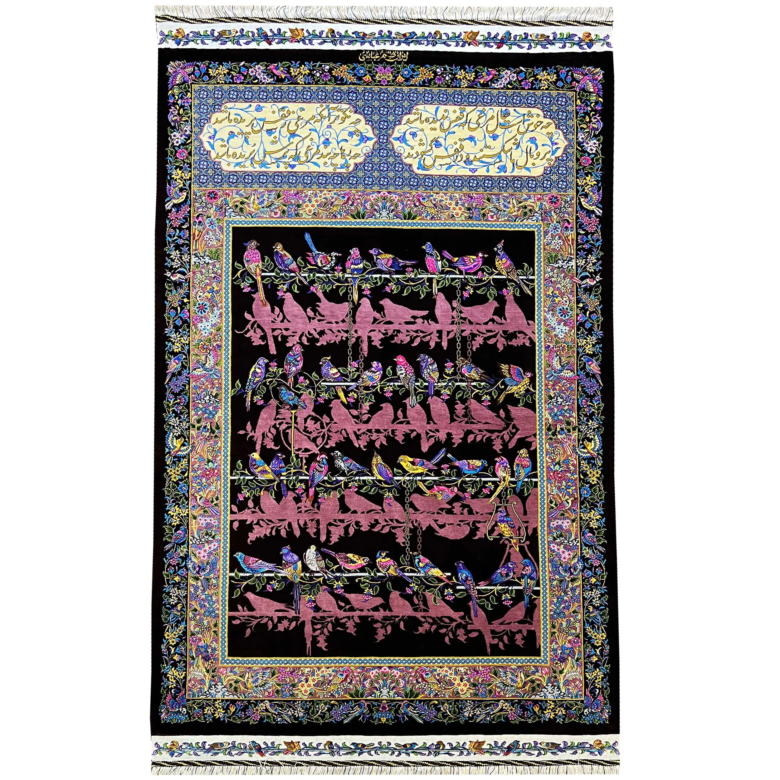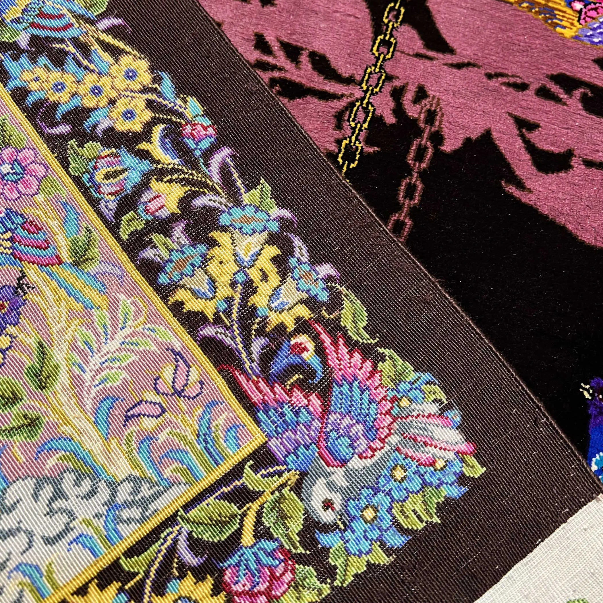 ذرعونیم تمام ابریشم قم، با رنگ بوم و لبه قهوهای سوخته و طراحی هنرمندانه، فرشی بسیار باارزش میباشد.