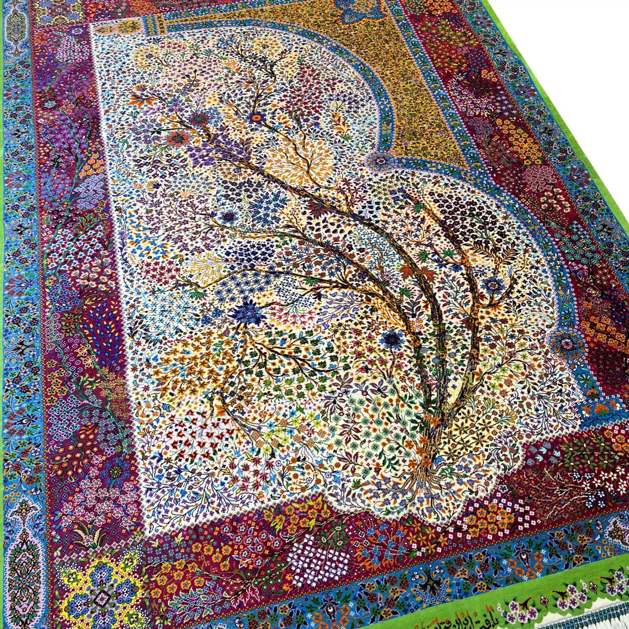 فرش طرح درخت زندگی تمام ابریشم اصل قم