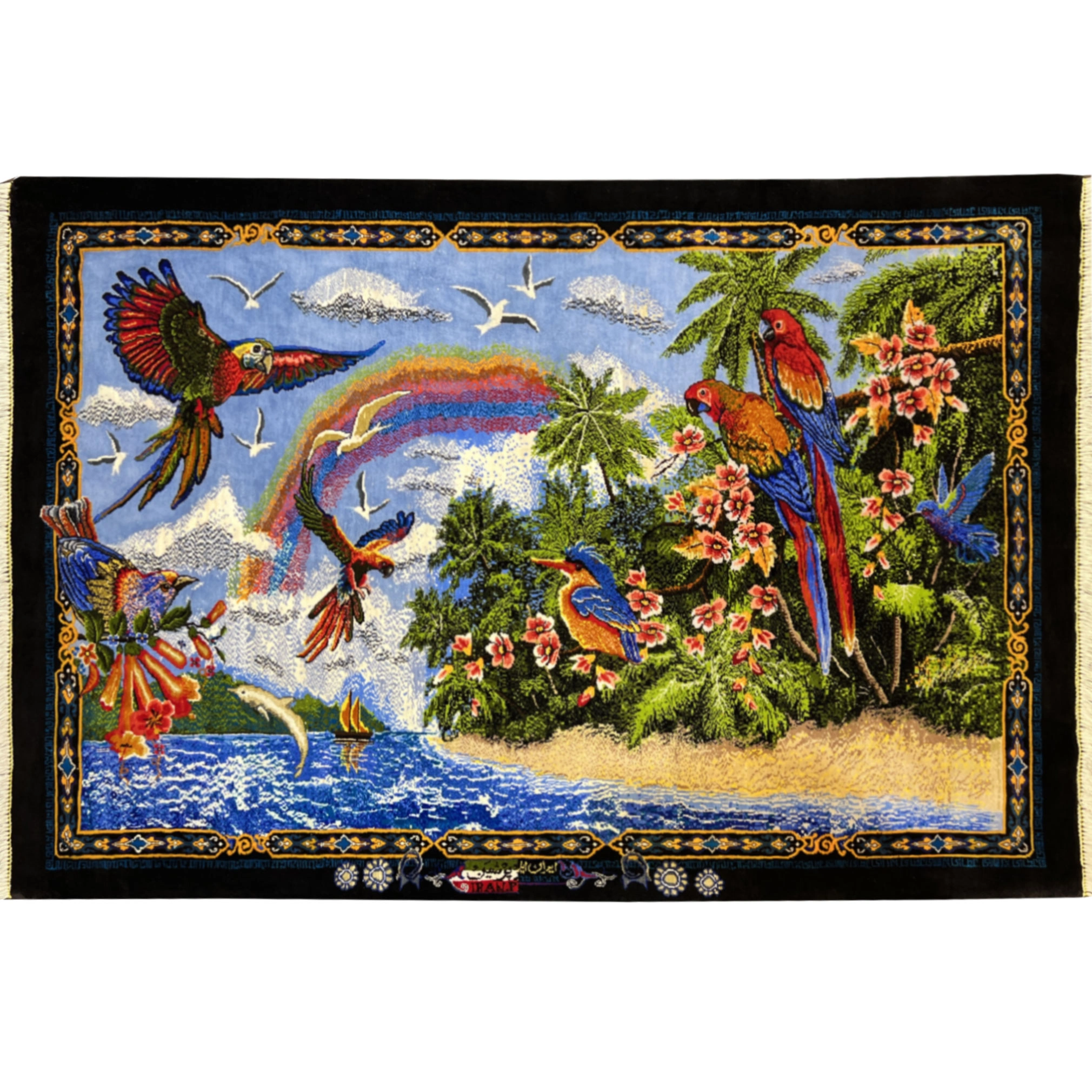 فرش طرح هاوایی دستباف تمام ابریشم قم