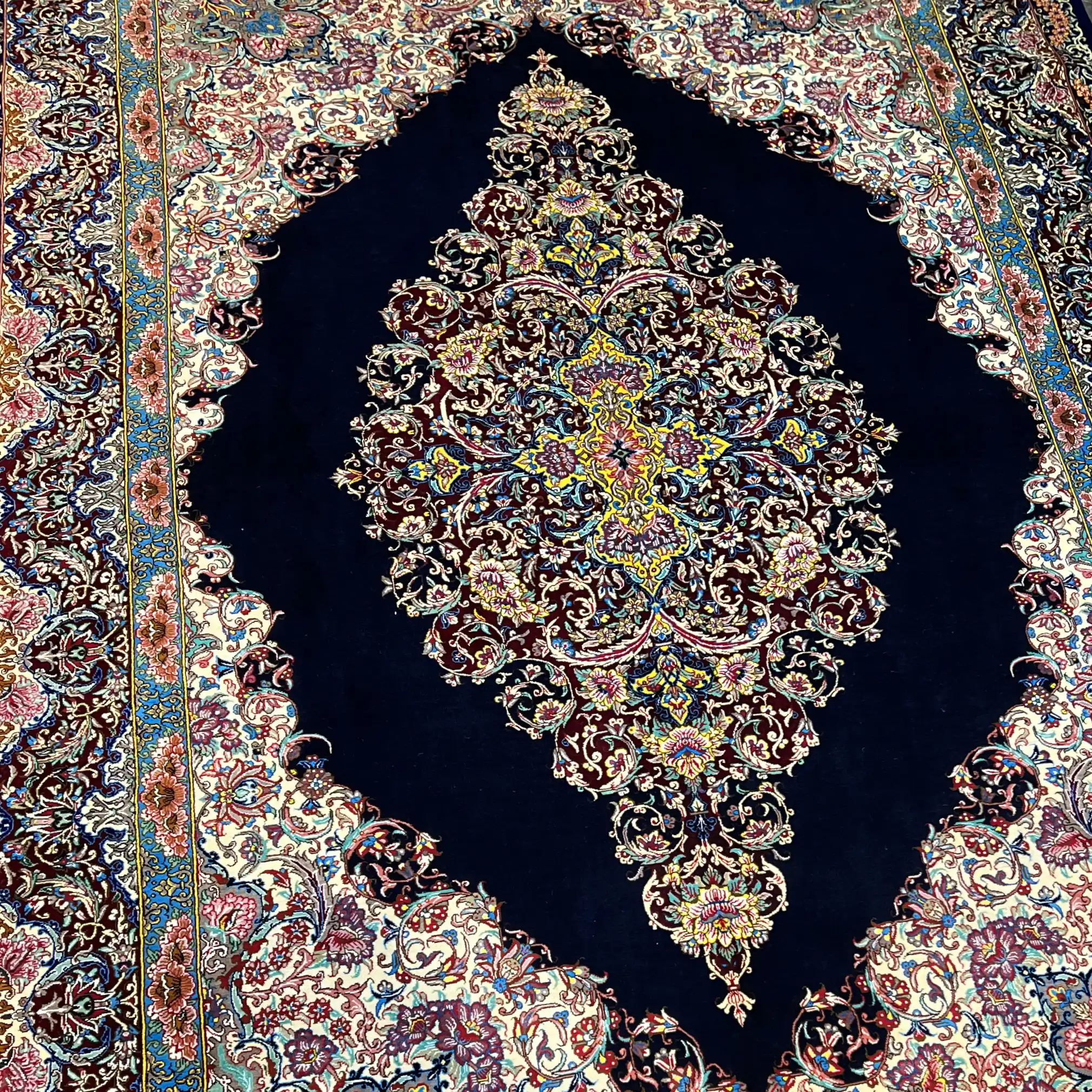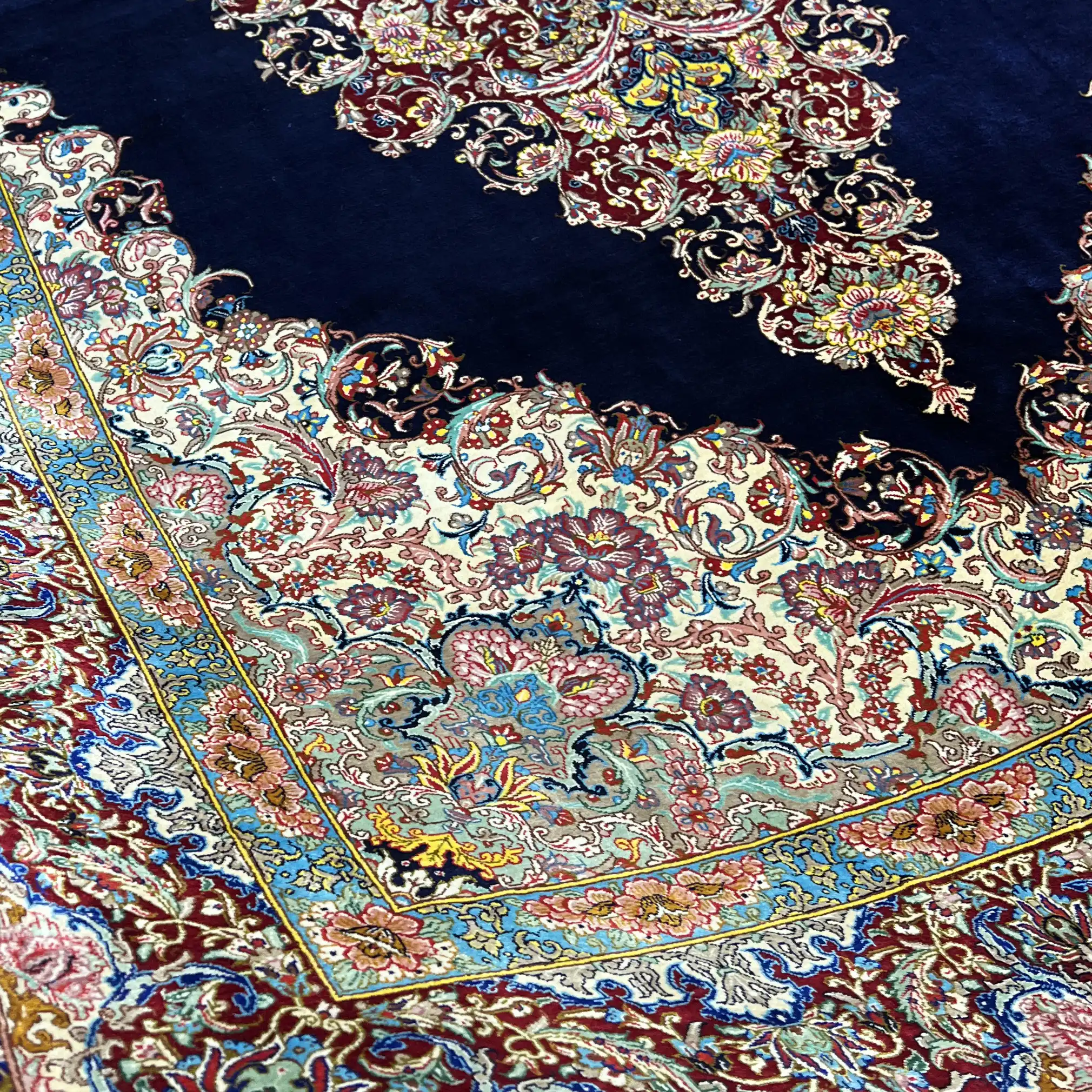 قالیچه نفیس دستباف تمام ابریشم اصل قم