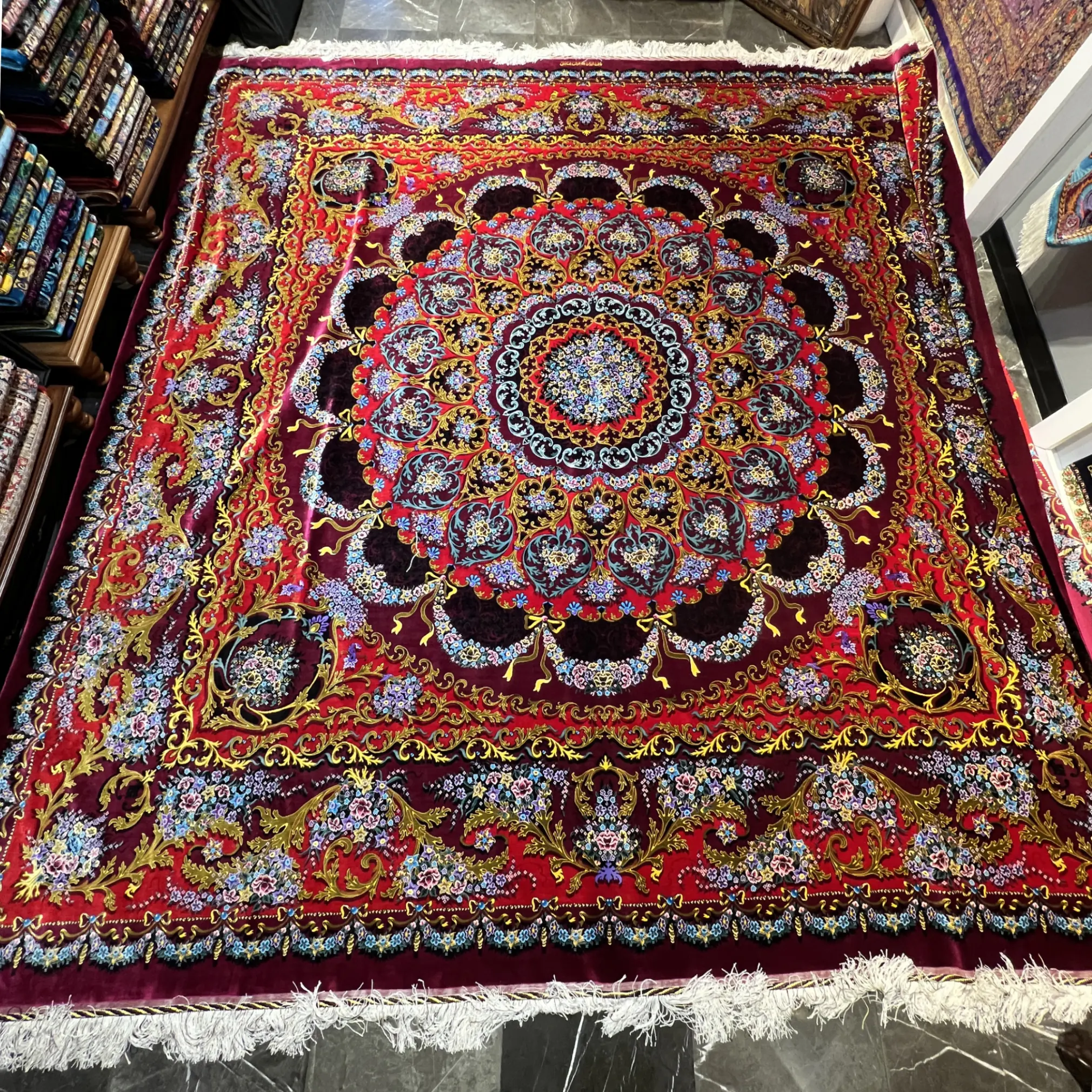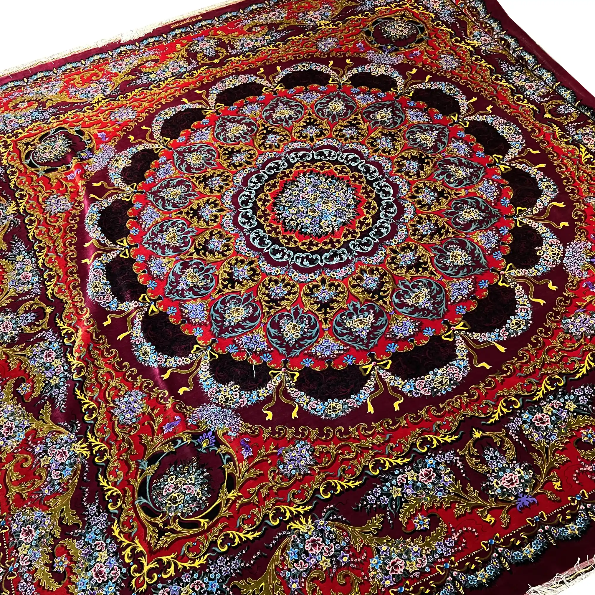فرش مربع دستباف تمام ابریشم قم