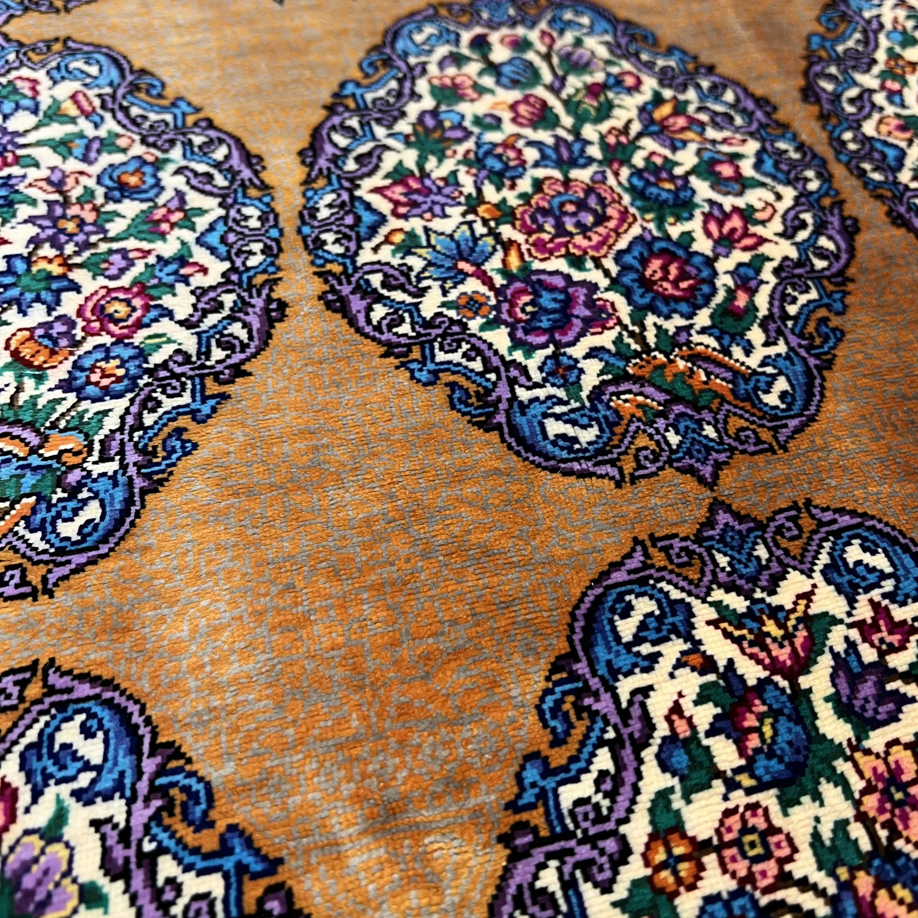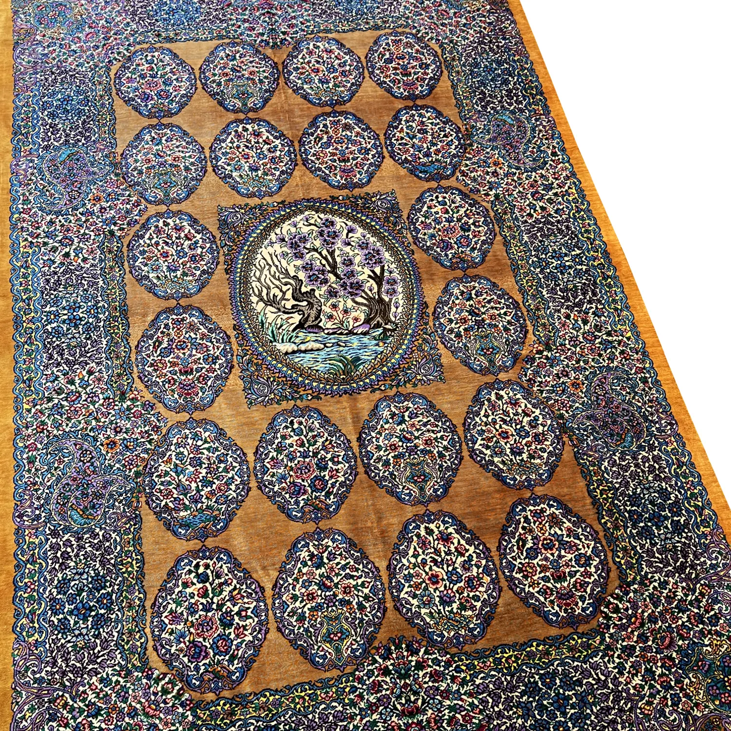 فرش نقشه واگیره تمام ابریشم اصل قم