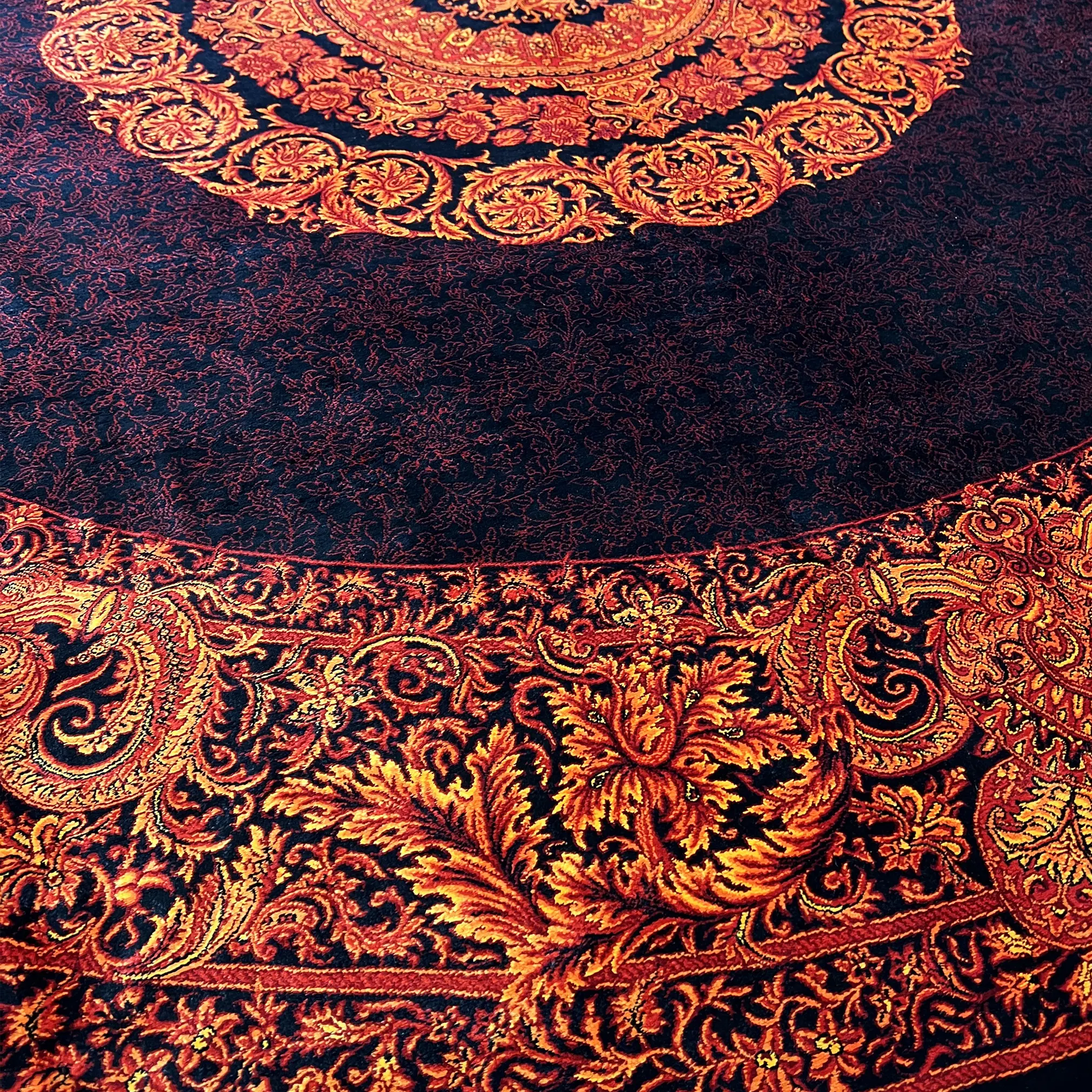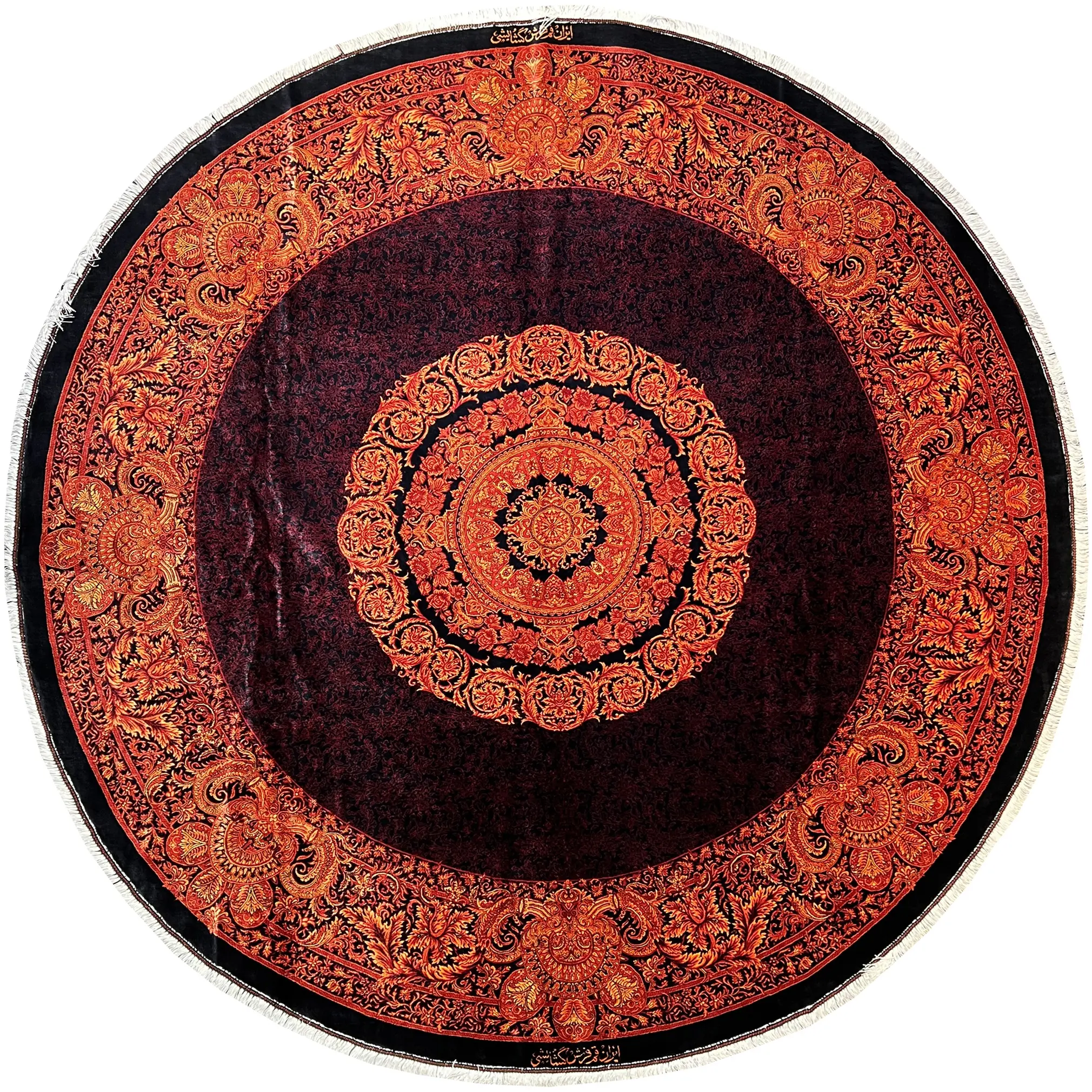 فرش گرد طرح ورساچه تمام ابریشم اصل قم